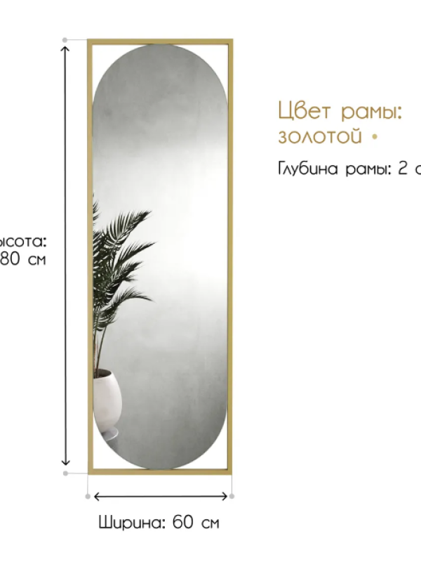 Зеркало «Lustrous middle». Артикул GMZ-11-2-1/2/3 Интересное дизайнерское решение в виде достаточно крупного настенного зеркала овальной формы в прямоугольной раме идеально для реализации любого современного интерьера. Сильно вытянутый овал позволяет не только визуально увеличивать пространство, но и делать потолки более высокими. Зеркало подходит для интерьеров, выполненных как в классических, так и в современных стилях и может использоваться для помещений любого назначения. Высококачественное зеркальное полотно и прочная металлическая рама делают эту модель абсолютно безопасной. На тыльной стороне рамы имеются специальные крепёжные элементы.Характеристики:– габаритные размеры – 1800х600х20 мм, металлический профиль квадратный – 20х20 мм; – зеркальное полотно производства AGC, Бельгия; – высокопрочный полимерный слой, порошковая окраска; – возможные цвета – золотой, чёрный, белый; – саморезы для крепления к стене в комплекте; – вес – 12 кг; – гарантия – 1 год.